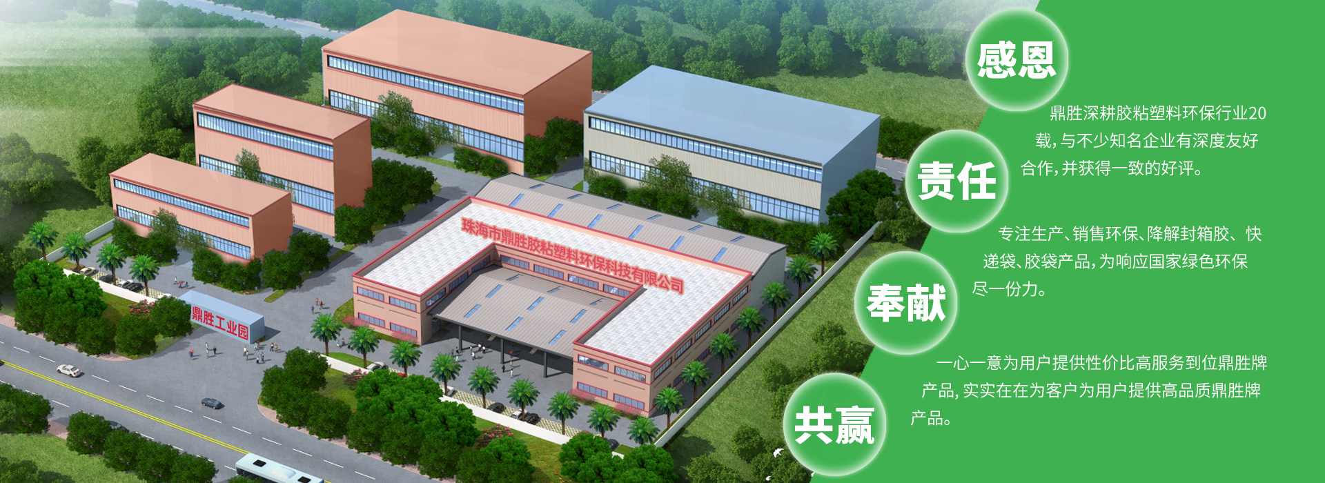 鼎勝是一家不斷創(chuàng)新發(fā)展的環(huán)保降解、膠袋、封箱膠企業(yè), 創(chuàng)始于廣東美麗珠海, 公司注冊(cè)資金1000萬(wàn), 花園式廠房超一萬(wàn)平方米。